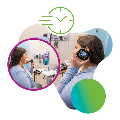 When you visit OSF OnCall Urgent Care, you may have the option of an in-clinic visit with a virtual OSF OnCall provider. This quick, convenient alternative saves time and offers the same high-quality care, just with your provider on screen. The room includes advanced assessment technology that gives the provider the ability to look in your ears and throat and listen to your heart and lungs.