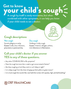 Keith Hanson, MD, pediatric hospitalist at OSF HealthCare Children’s Hospital of Illinois, helps break down the different types of coughs in children and the signs that mean your child may need medical attention.
