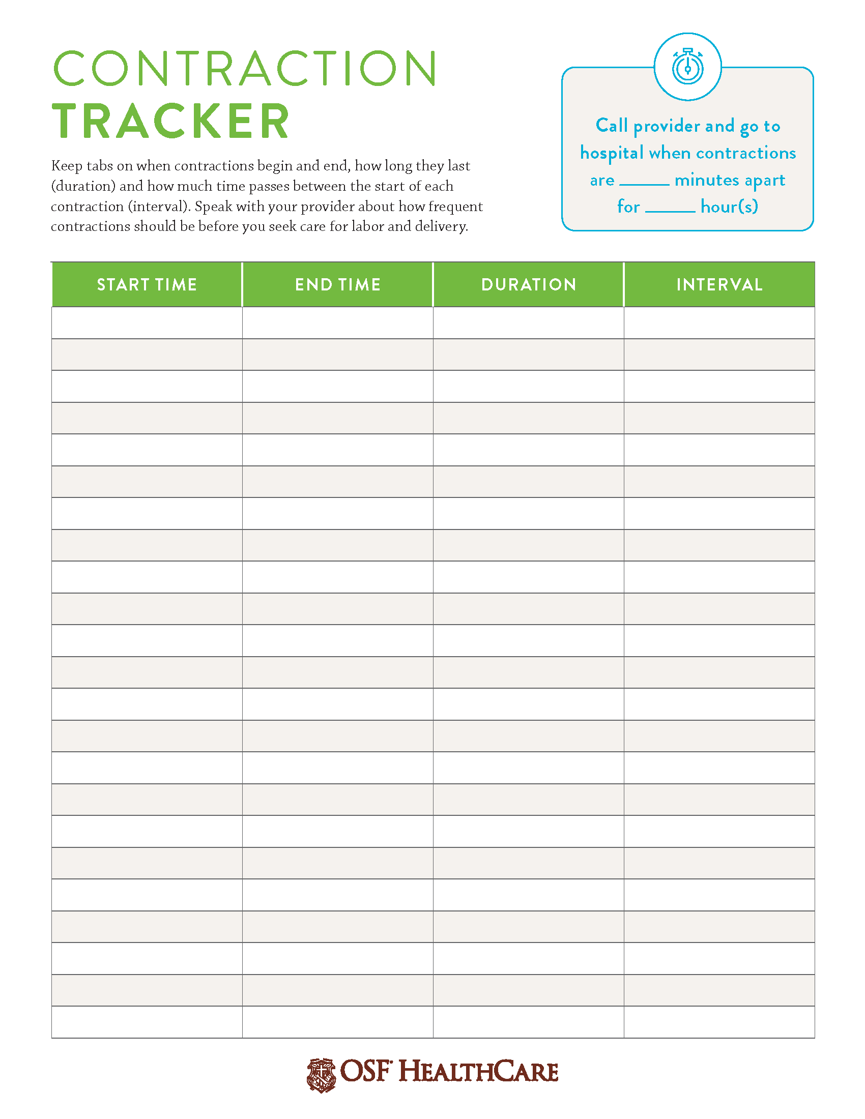 A contraction tracker can help you keep it organized.